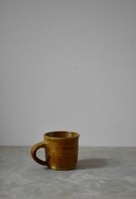Wheel thrown cup made from iron-rich speckled stoneware and finished with a honey glaze.