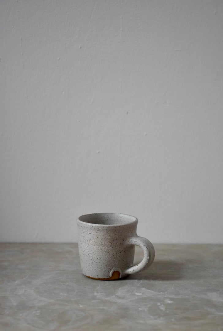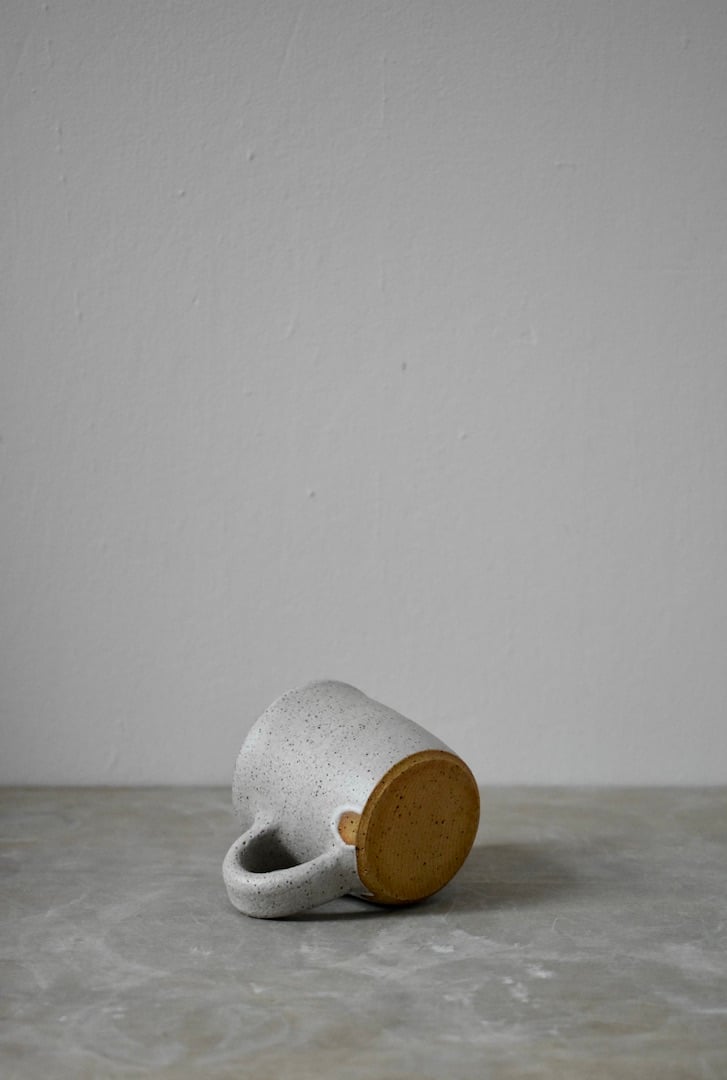 Wheel thrown cup made from iron-rich speckled stoneware and finished with an oatmeal glaze.