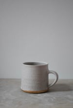 Wheel thrown mug made from iron-rich speckled stoneware and finished with an oatmeal glaze.