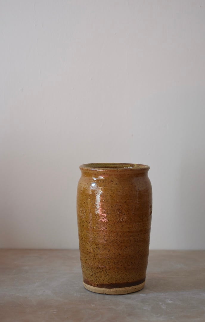 Wheel thrown vase made from iron-rich speckled stoneware and finished with a honey glaze.
