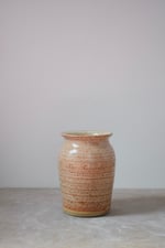 Wheel thrown vase made from iron-rich speckled stoneware and finished with a shino glaze.