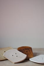 Wheel thrown and altered soap dish, made from iron rich speckled stoneware.